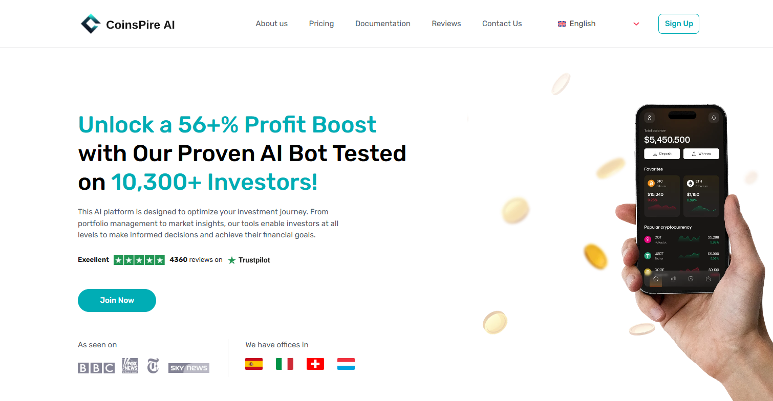 CoinsPire AI is a cutting-edge investment platform that uses quantum computing and artificial intelligence to analyze market trends. It provides its users with smarter, data-driven tools for automated and efficient investment decisions.